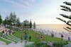 The design provides a new look and feel, improved beach access, additional recreational space, and wide footpaths with features such as coastal gardens, natural seating, green and shady spaces, a lookout zone, playground and fitness areas, as well as plaza areas for space activation.